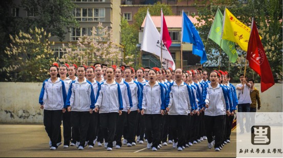 公司方阵第三位入场,同学们身着蓝色院服,精神抖擞,士气高昂,正步列队,来到赛场上。音乐响起,队列整齐散开,六面院旗迎风展开,“巍巍历史,才学泱泱”的口号展示着太阳成集团tyc122ccvip学子们积极昂扬的精神态度。一个月以来,运动员们牺牲了自己的休息时间,坚持训练,克服困难,而今天他们的表现,正是对他们这一个月辛苦努力训练的完美诠释。场边的观众一齐为运动员加油助威。