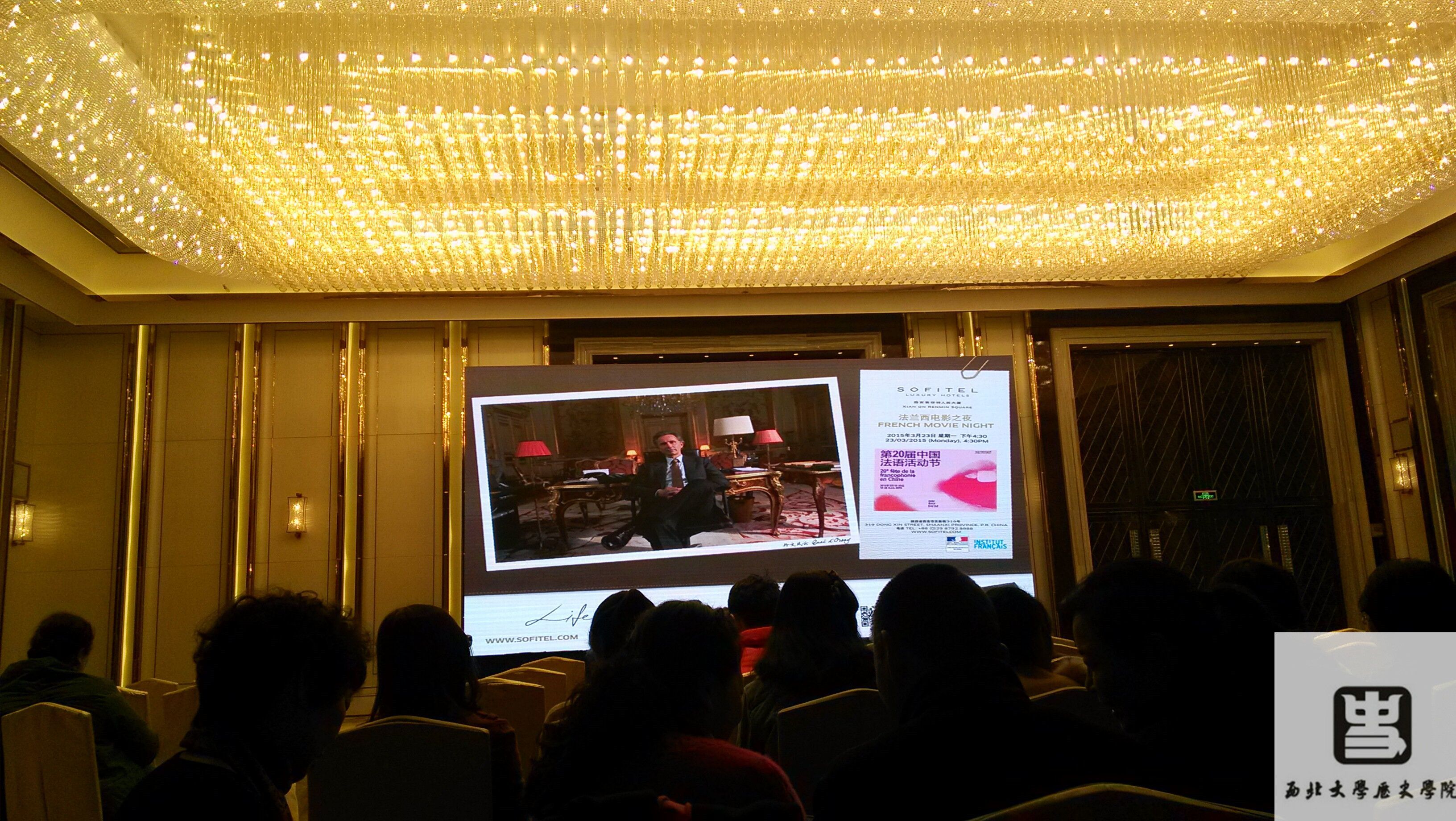 下午五点,活动正式开始。西安法语联盟中方董事长与法方董事长共同作了精彩致辞,表示热烈欢迎大家学习法语,了解历史悠久的法国文化。随后,法国电影《外交风云》开播,以视觉的形式让大家对法国文化有了一个更加直观的了解。电影具有典型的法国特色,让同学们深切感受到了法国式的幽默与浪漫,体验到了别样的法国风情。
