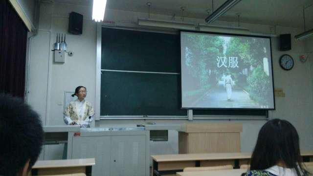 本次讲座以展示汉服文化的视频开端。接着,蒙贺昱同学又介绍了关于汉服的基本常识,例如关于汉服的形制,构成等等,绘声绘色,生动有趣。最有特点的是,大二的五位学姐现场穿着汉服,介绍她们自己对于汉服的理解,以及自己喜欢汉服的理由,使现场的同学们对汉服自身以及承载的历史文化产生了浓厚的兴趣。同学们也积极踊跃发言,与学姐们大胆交流心得,讲述了自己对于汉服的理解最后,讲座也是在一段生动的视频中结束,大家仍然意犹未尽,整场讲座圆满结束