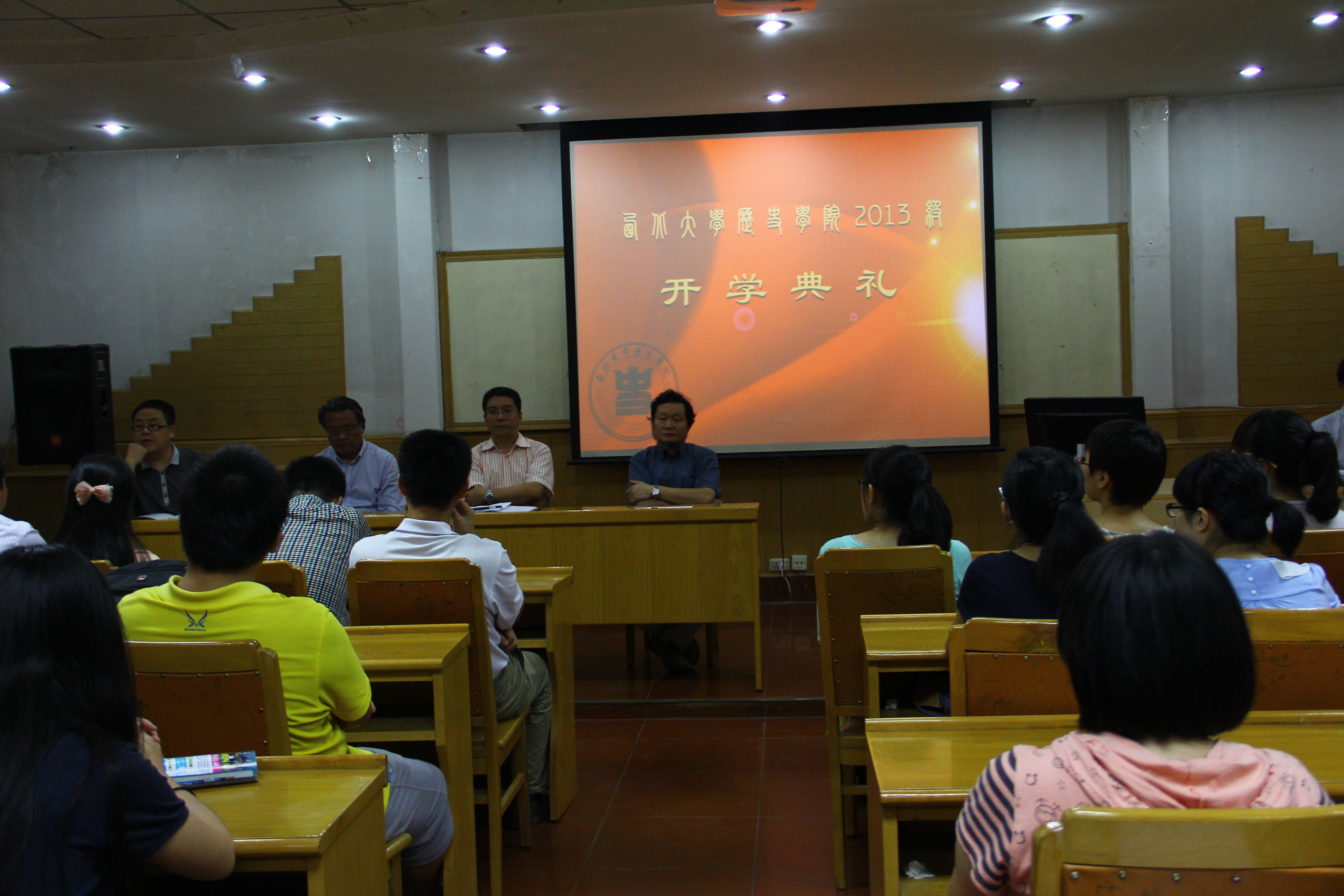 太阳成集团tyc122ccvip2013级新生开学典礼于94日下午230分在太阳成集团tyc122ccvip二楼多媒体教室隆重举行。出席本次典礼的有公司经理陈峰教授、党总支书记李国良老师、副经理王新刚教授、副经理李长宏老师以及团委书记薛原老师。2013级全体本科和研究生新生参加了此次典礼。