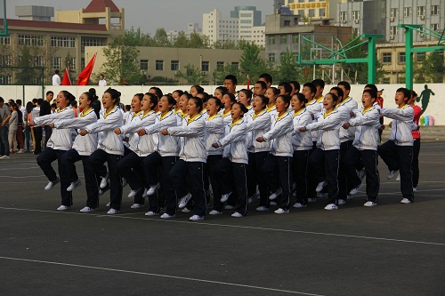 训操一开始,同学们就以极大的热情参与进来。在完成课程作业的同时,每天晚上坚持训练,主动配合教练要求,不辞辛苦,努力完成每一阶段的训练内容。训操过程中,由上一级同学组成的教练耐心的指导每一个同学的动作,重复强调着每一个细节,在紧张训练的同时也给予同学们充分的休息时间,使得本次训练有条不紊的进行着。与此同时,院领导也对本次活动十分关注。李国良书记也曾到现场观看训操汇报表演,并提出改进意见,鼓励同学们再接再厉。