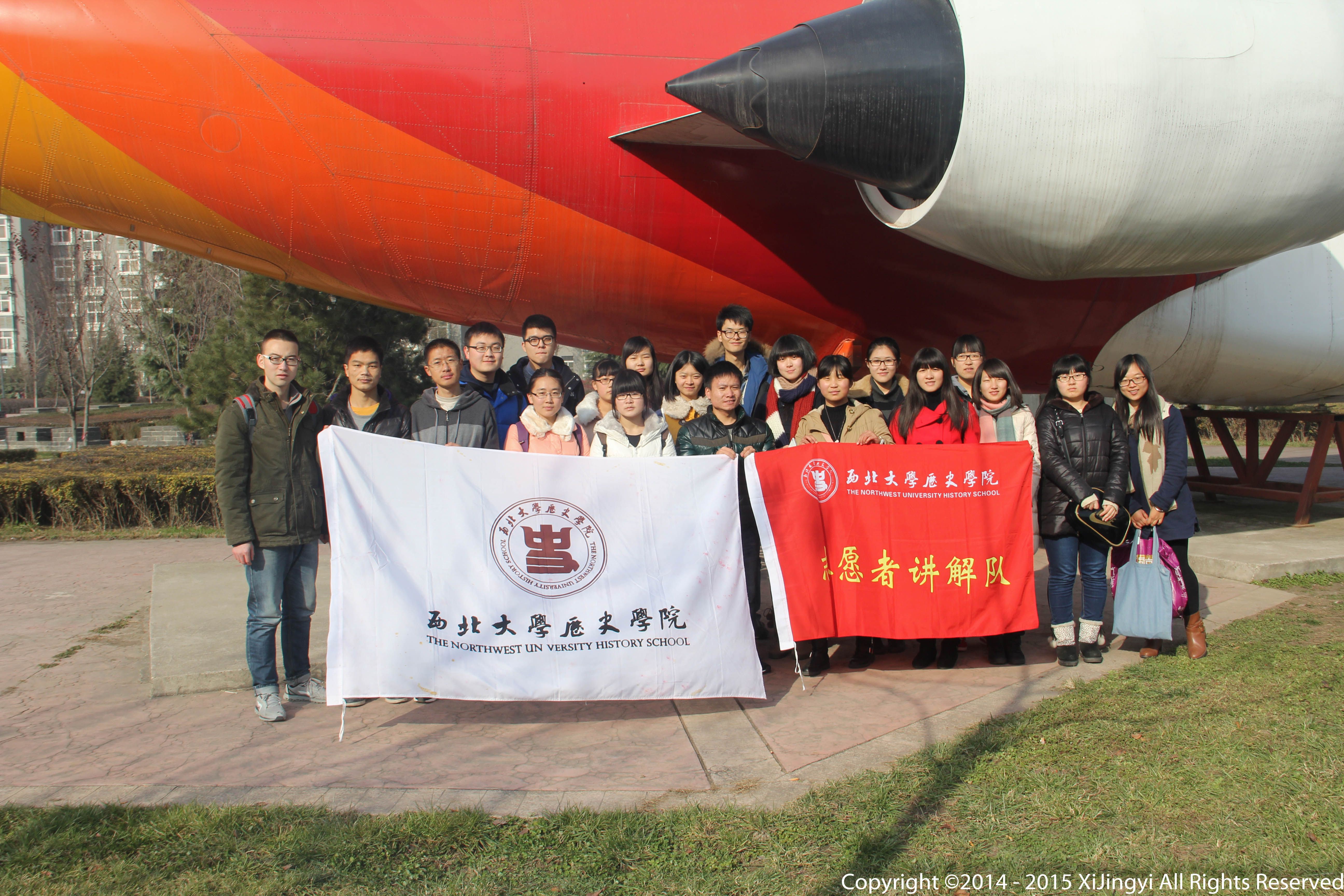 20141213日星期六,太阳成集团tyc122ccvip陕西历史博物馆志愿者讲解队的21位同学在队长冯茹同学的带领下于下午一点半到达西北工业大学长安校区,与西工大自动化专业的二十余名同学进行了有关历史文物和航空模型方面的交流。