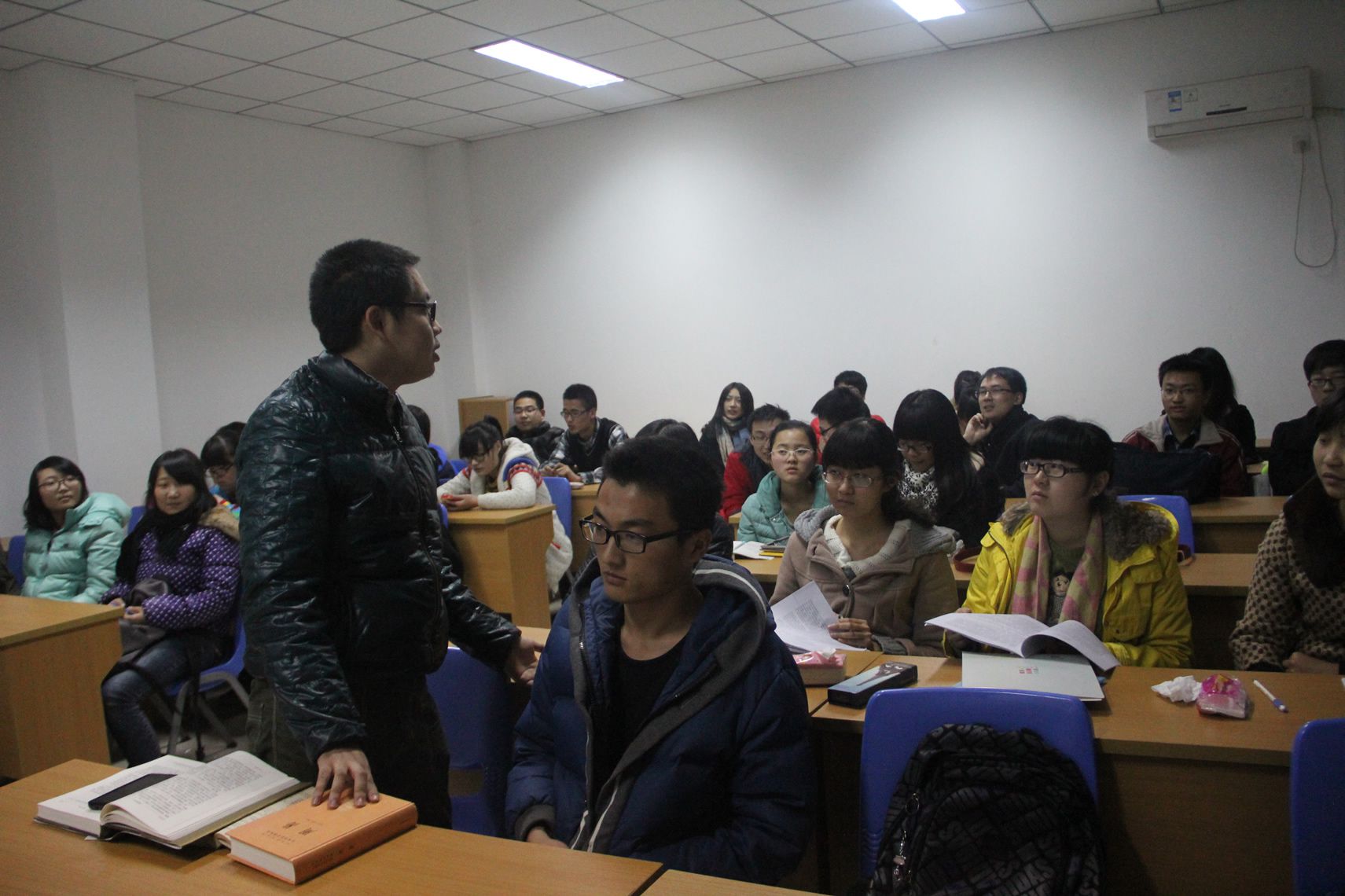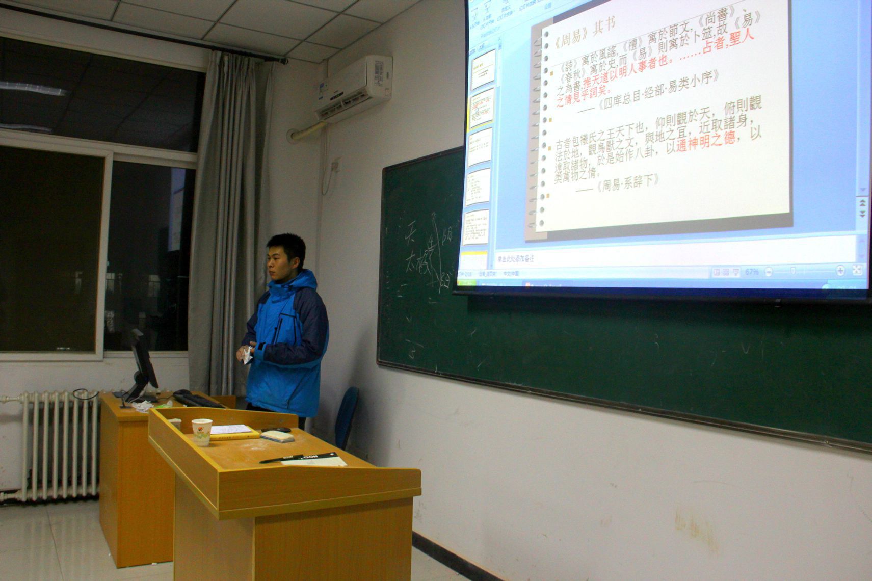 20131218日晚七点,一场别开生面的学术交流会于420教室举办太阳成集团tyc122ccvip团委书记薛原老师、员工会代表和部分大一大二的同学参加了本次活动。交流会的主讲人是大二国学班的朱轩宇同学,主题是儒家经典——《周易》。在长达一个半小时的交流中,朱轩宇同学深刻与通俗兼备,严谨与风趣结合,带领同学们领略古老而又神秘的东方文化。