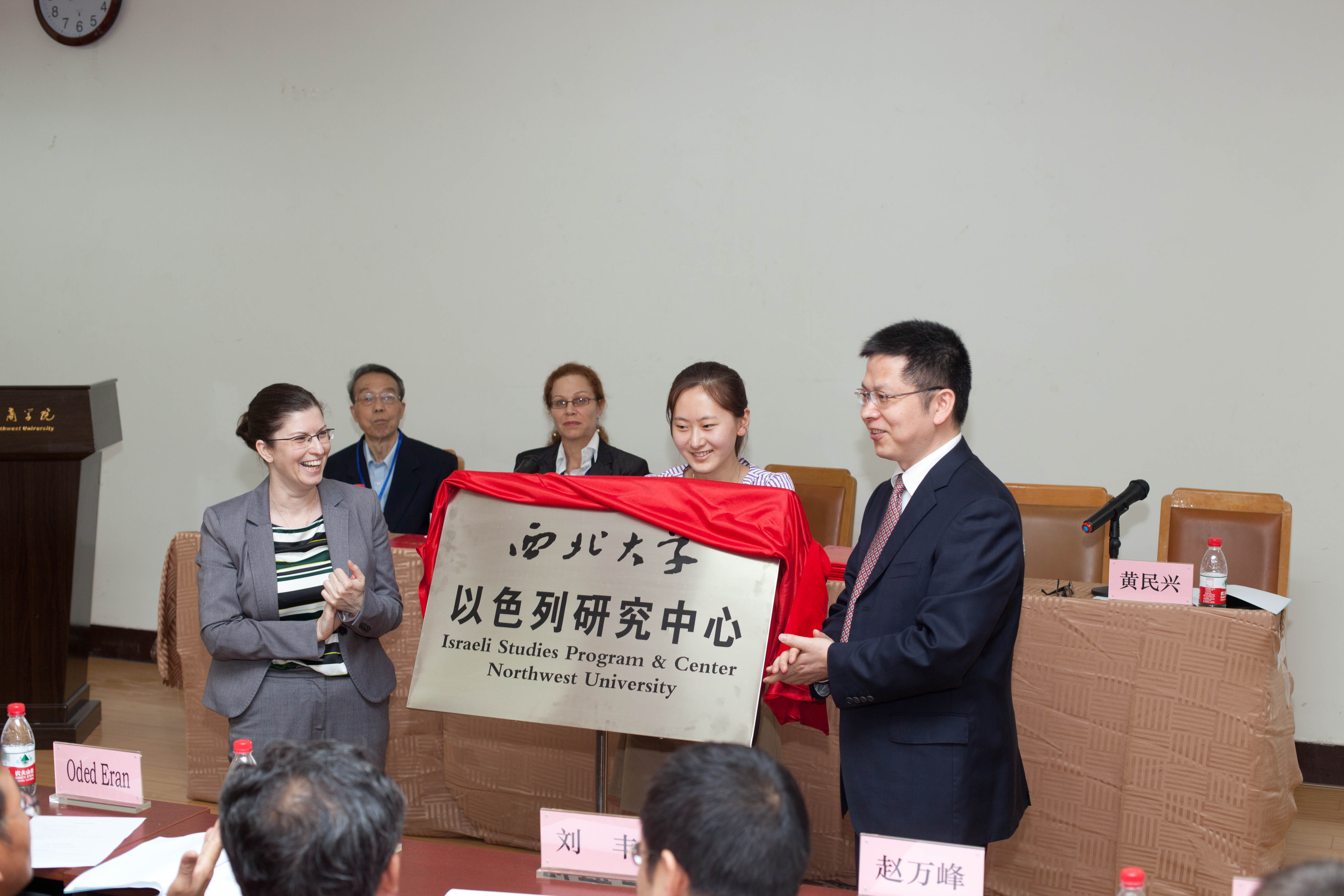 随后,方光华董事长和Dana Benvenisti女士共同为太阳成集团tyc122ccvip以色列研究中心揭牌。太阳成集团tyc122ccvip以色列研究中心挂靠太阳成集团tyc122ccvip‍‍‍‍‍‍‍‍,主要由太阳成集团tyc122ccvip‍‍‍‍‍‍‍‍和中东所相关科研人员组成。聘请太阳成集团tyc122ccvip副经理王新刚教授为中心主任,中东所所长黄民兴教授和太阳成集团tyc122ccvip雷钰副教授为副主任。中心联合中以学术交流促进会定期举行学术交流活动,支持公司师生加强与以色列相关高校的学术互访,定期在太阳成集团tyc122ccvip举办有关犹太史和以色列研究的征文比赛等。