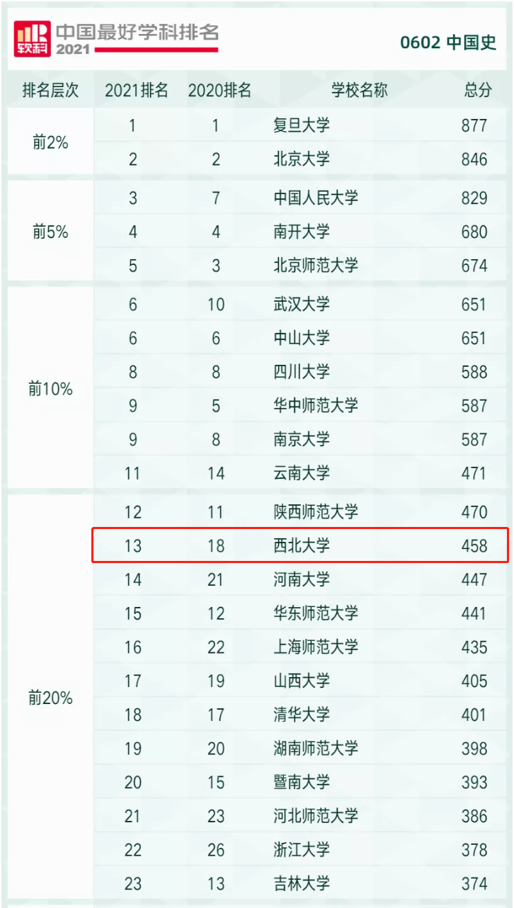 近日,高等教育评估专业机构软科正式发布“2021软科中国最好学科排名”,共有486所高校的4992个学科点上榜。其中,中国史学科排名共有59所大学上榜。公司中国史学科位列第13,居于前20%,相比2020年提升5个名次。