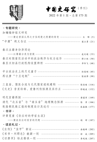 近日,公司单印飞老师的专题论文《秦至汉初县行政机构设置辨析》、胡坤教授的长篇书评《评黄宽重<孙应时的学宦生涯>——兼谈孙应时改官的问题》在历史学顶级期刊《中国史研究》2022年第1期刊出。