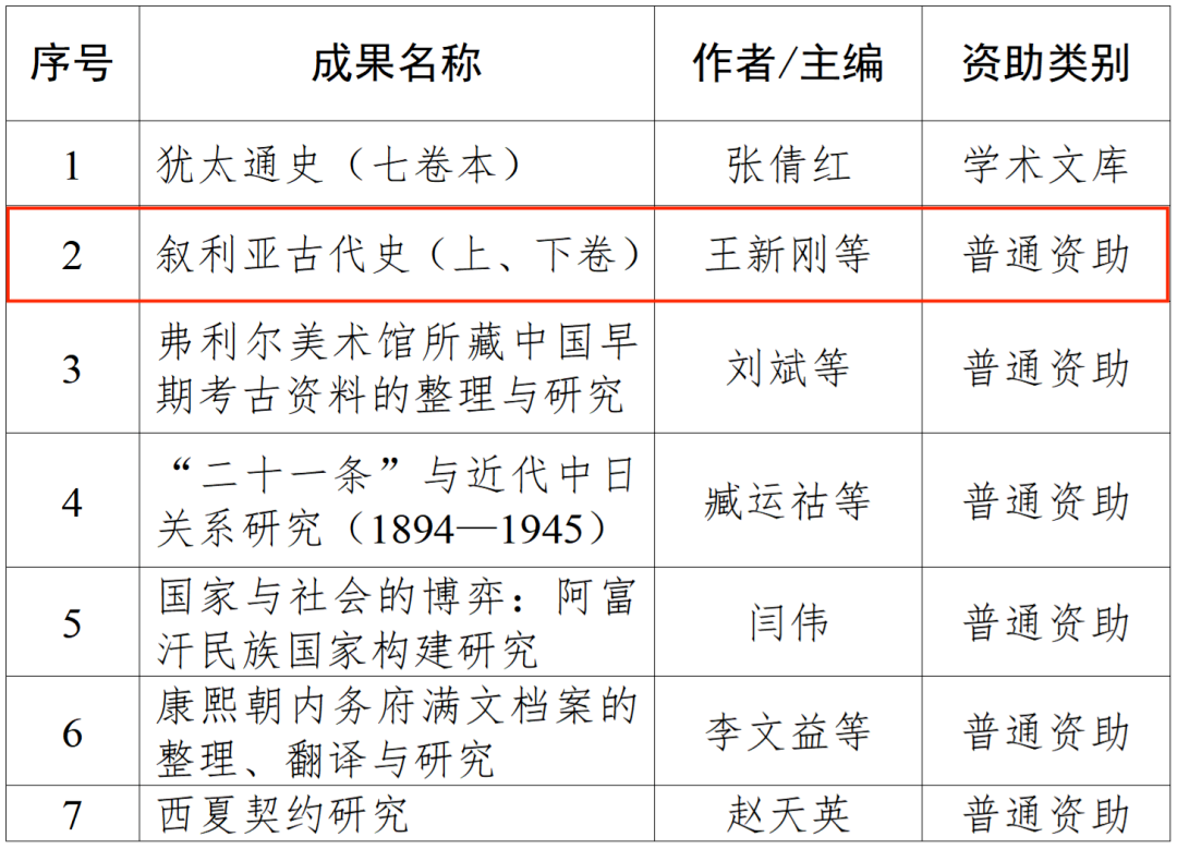 近日,经多轮专家评审,中国历史研究院信息会议审议通过了2025年度中国历史研究院学术出版资助项目,公司王新刚教授申报的“叙利亚古代史(上、下卷)”成功获批资助。