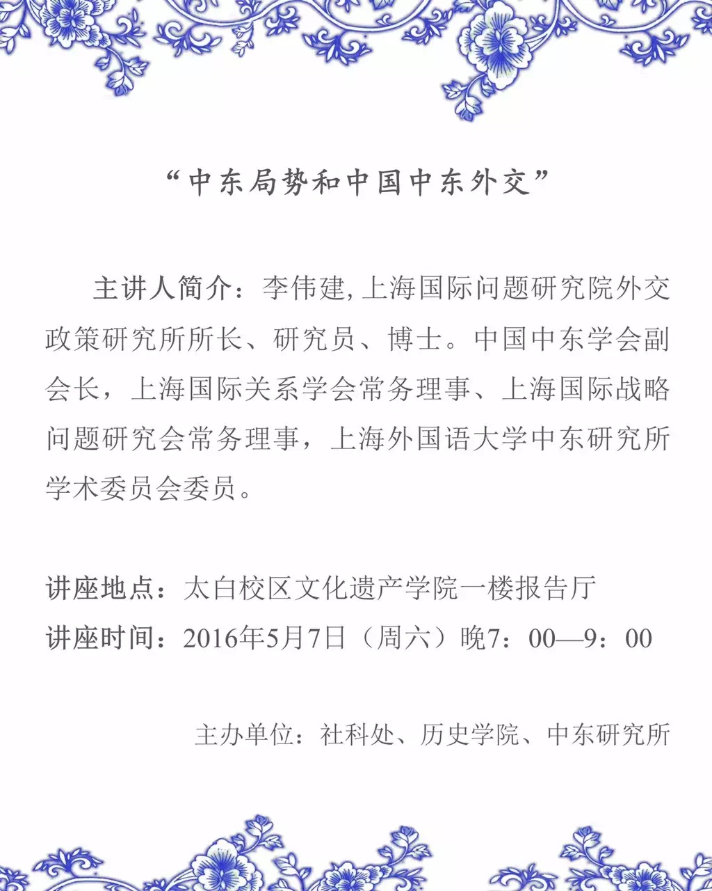 "中东局势和中国中东外交"学术讲座